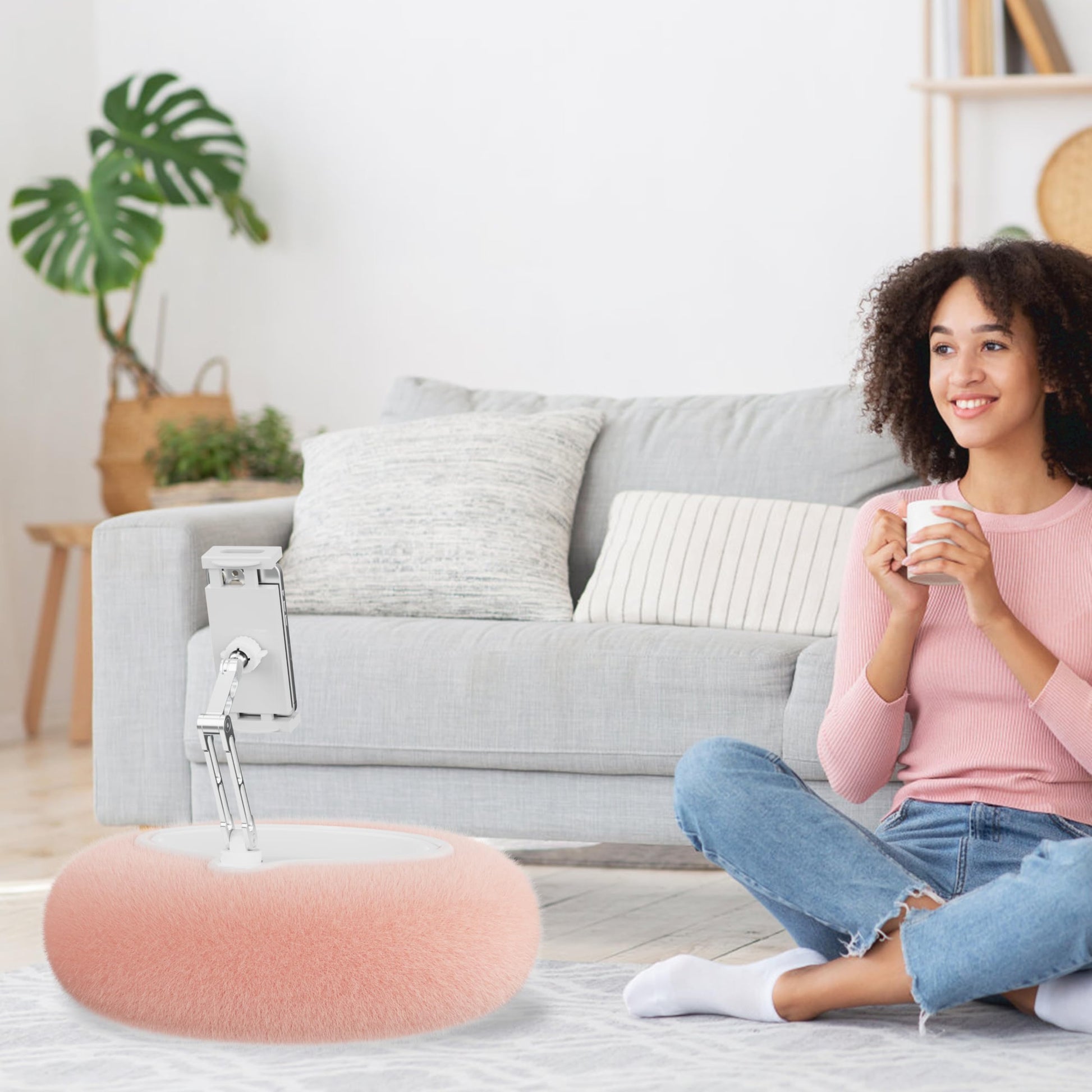 Tablet Stand Pillow,360°Adjustable Phone Holder for Bed with Soft Plush Fabric, and Detac [ship from the US]hable Bowl, Pink